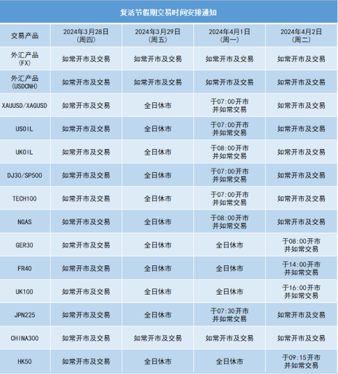 复活节假期交易时间安排通知
