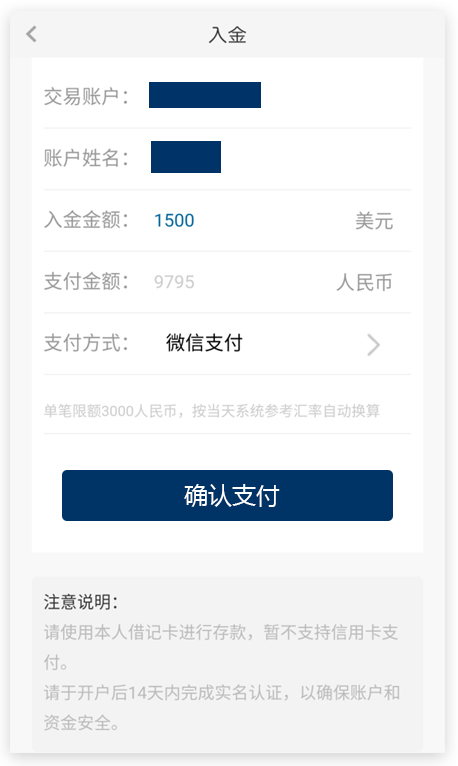 只需三分钟便能完成整个开户流程,透过网上银行人民币进行存款,成功后即可马上进行交易,把握行情,增加盈利机会!